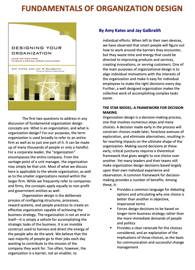 Designing Your Organization: Using the STAR Model to Solve 5 Critical Design Challenges, Amy Kates, Jay R Galbraith