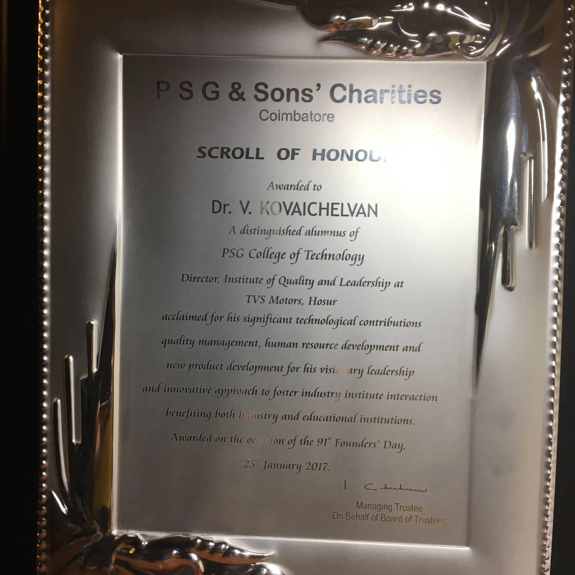 Falicitation on award of PhD by Hosur PSG Alumini Chapter